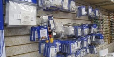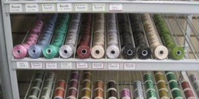 needs. We only carry quality products that meet our higher standards for notions. We carry a variety of notions such as stabilizers, specialty machine needles and threads. We also carry sewing cabinets to help you organise yourself and work more efficiently. Below are photos of some of the wide selection of notions in our store.